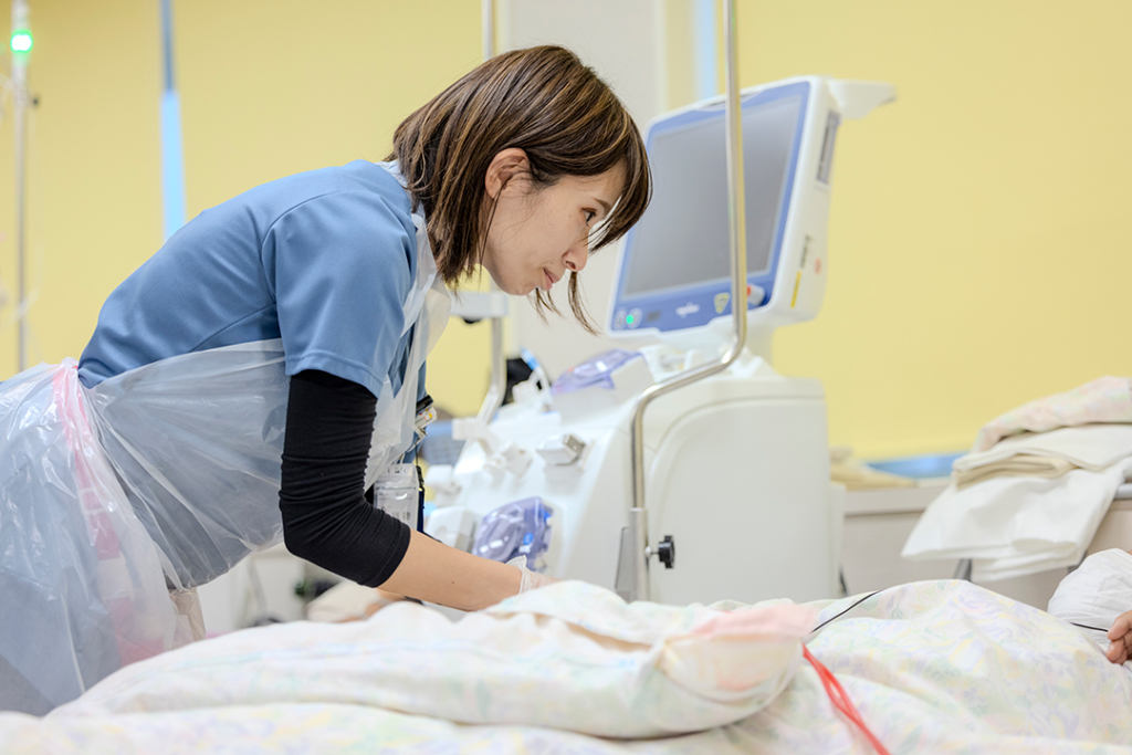 24時間体制での透析治療を行えるように専門スタッフを配置しています。