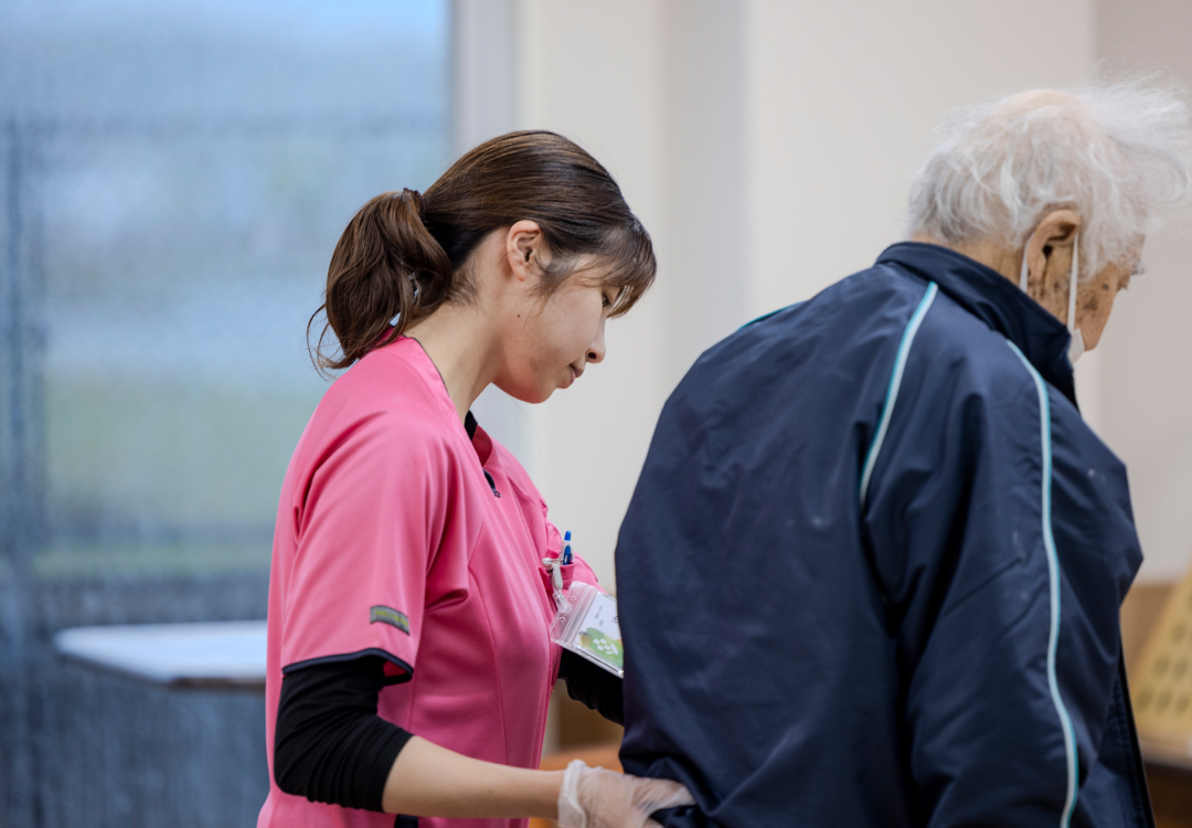 食事・更衣・移動などの日常生活動作の向上を目指すリハビリに加え、家事などの生活動作訓練も行っています。手工芸や軽スポーツなどの余暇活動も取り入れ、在宅・社会復帰を支援しています。