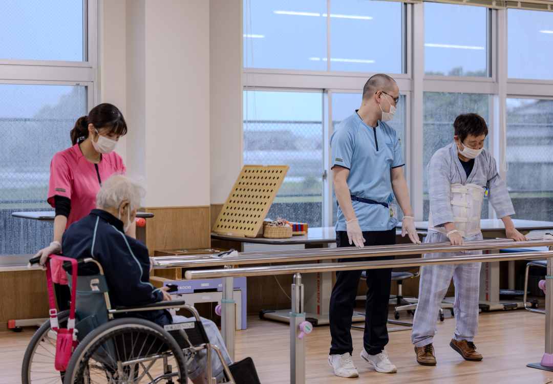 当院では急性期から在宅まで幅広い医療を提供しています。その中で、脳血管疾患や運動器疾患、また長期臥床により身体機能が低下された方に対して、医師、看護師、介護士、管理栄養士と連携し、総合的なリハビリテーションを行なっています。