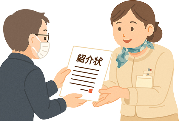 - 来院いただきましたら受付にて紹介状をお渡しください。
